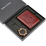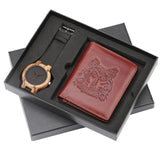 Fashion Mens Watch Genuien Leather Quartz Wood Watch Luxury Wallet Gift Set for Men reloj masculino Minimalist Men's Wristwatch