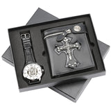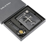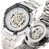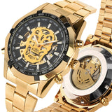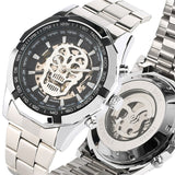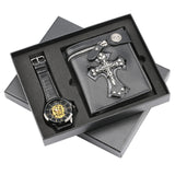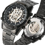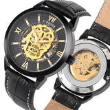 Luxury Watch Mens Mechanical Wristwatch Skeleton Skull Men's Watch Punk Leather Wallet Gift Set for Male reloj masculino