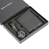 Watch Quartz Wristwatch Men's Steel Bangle Watch Wallet Gift Set Modern Black Fashion Mens Wrist Clock Best Birthday Gifts